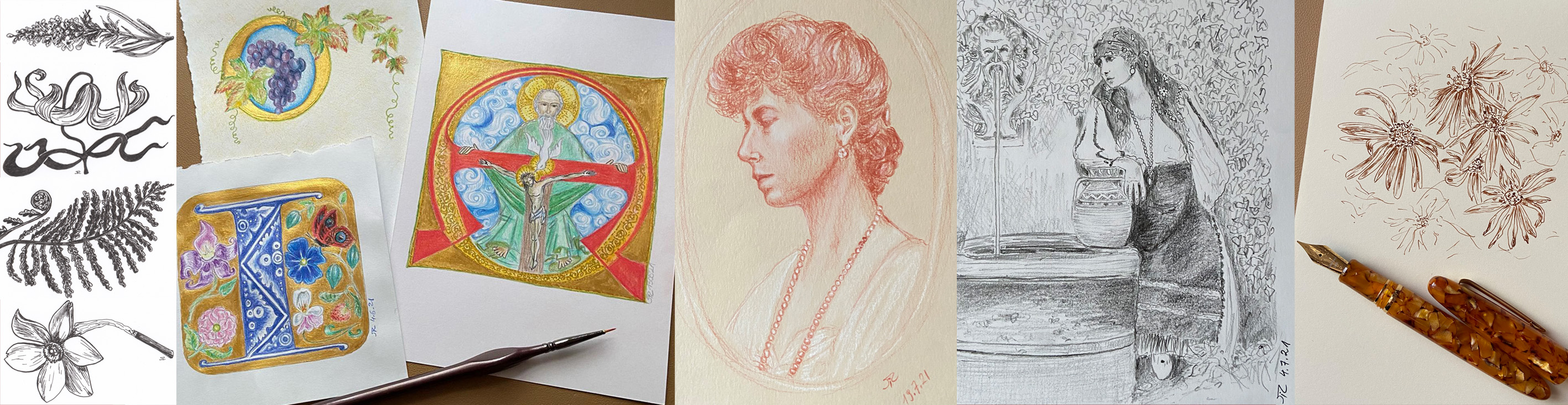 Colaborare cu ilustraţii botanice şi decorative precum şi caligrafie: